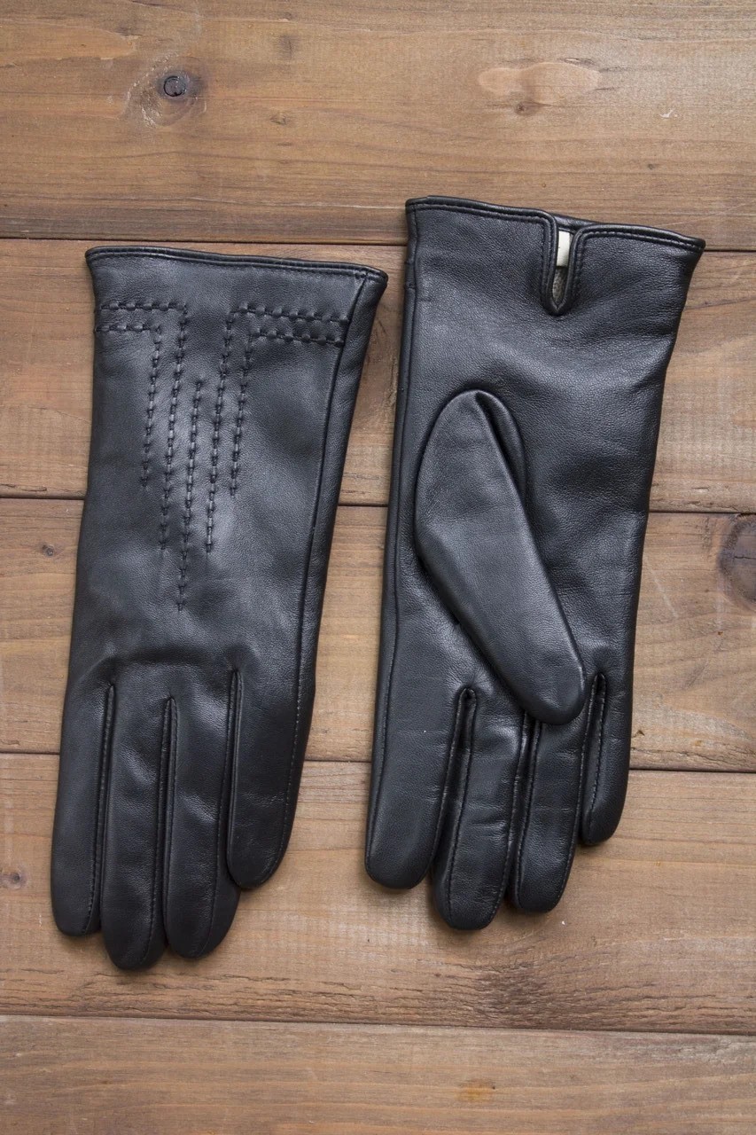 Перчатки женские чёрные кожаные сенсорные 948s1 S Shust Gloves