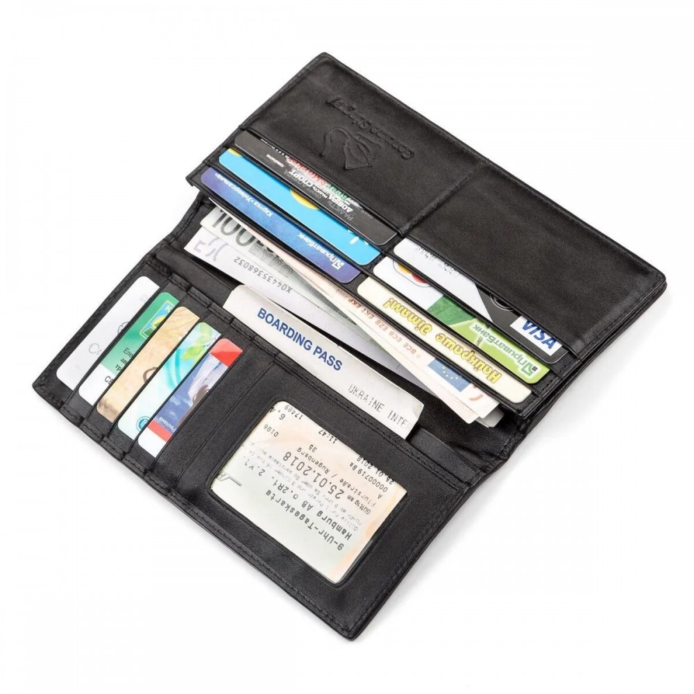 Количество отделов: 1 основной. Внутри отсек для купюр, монетница на молнии, 2 плоских кармана открытого типа, 11 слотов для пластиковых карт и кармашек с прозрачным окошком для фото, пропуска, ID-паспорта или водительского удостоверения.