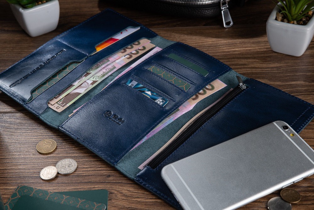 Количество отделов: 2 больших отдела для купюр и мобильного телефона; 8 отделений для карт, монетница на молнии. Каждый карман выполнен с подкладом (карты не проваливаются).