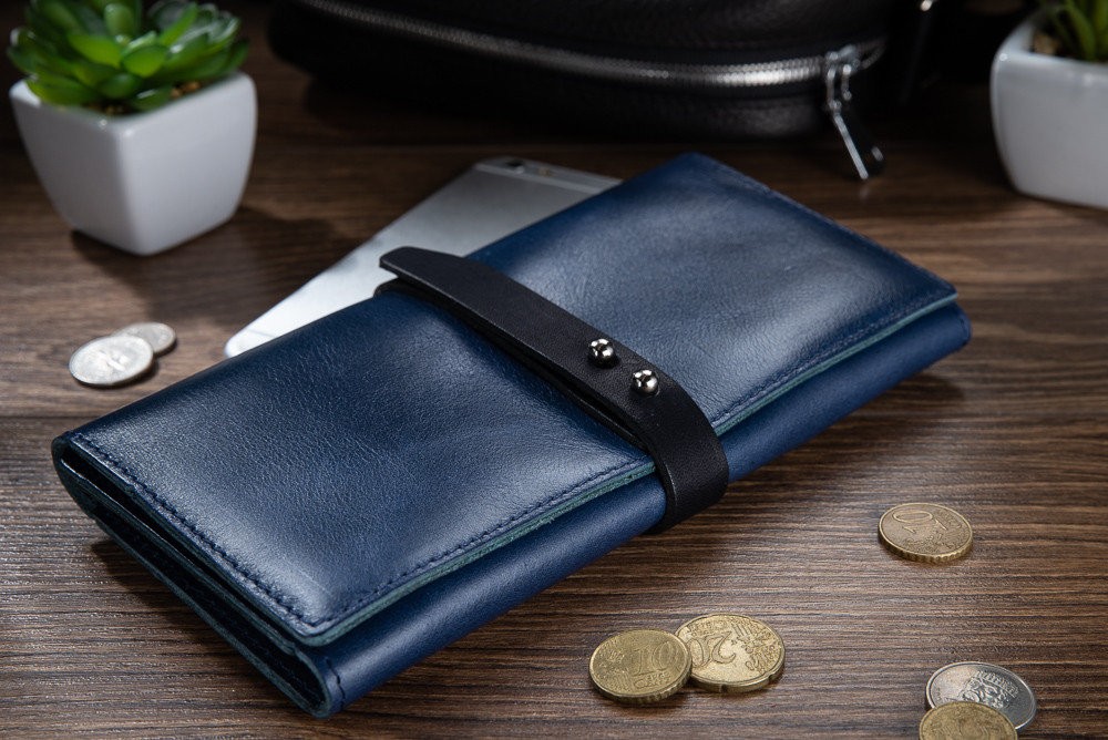 Эргономичный и стильный кошелек ручной работы из натуральной кожи на кнопках с художественным тиснением от HiArt , со всеми необходимыми отделами для купюр и мелочи. Будет отличным дополнением образа.