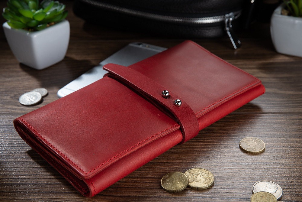 Эргономичный и стильный кошелек ручной работы из натуральной кожи на кнопках с художественным тиснением от HiArt , со всеми необходимыми отделами для купюр и мелочи. Будет отличным дополнением образа.
