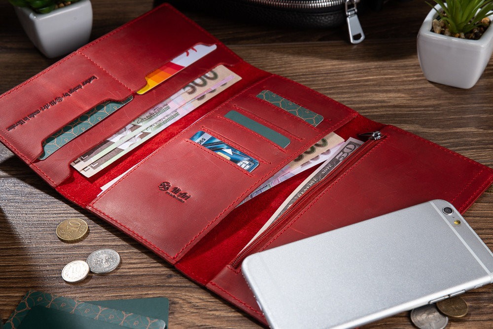 Количество отделов: 2 больших отдела для купюр и мобильного телефона; 8 отделений для карт, монетница на молнии. Каждый карман выполнен с подкладом (карты не проваливаются).