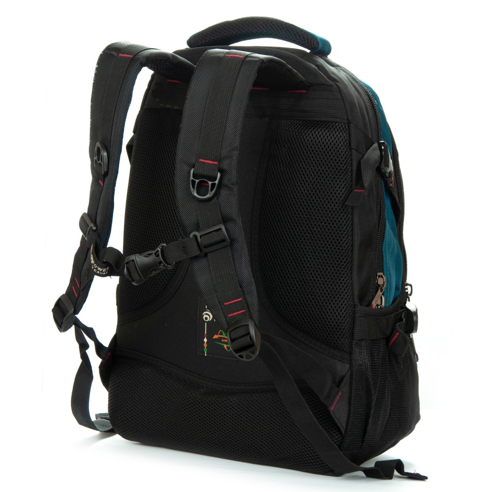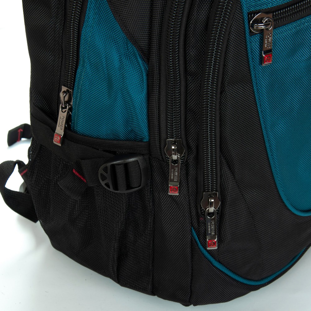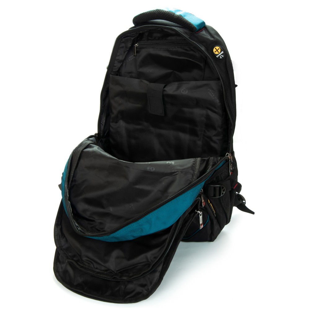 Количество отделений: 3 отделения на молнии. В первом отделении расположен карман- органайзер, а в третьем отделении есть карман для ноутбука и карман для телефона. Также, из основного отделения есть выход для наушников на внешнюю стенку рюкзака. На фасаде находится карман на молнии. Снаружи на боковых сторонах рюкзака расположены карманы-сетки для бутылок воды объемом 0,5 литров.