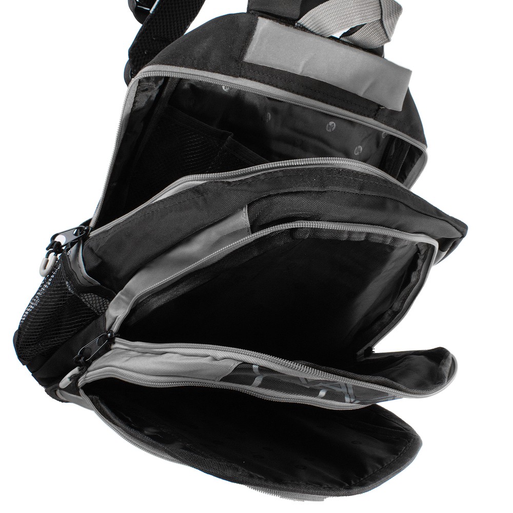 Количество основных отделений: 3. Внутри есть накладной карман-сетка. Рюкзак имеет боковые карманы из сетки. Спереди есть карман на молнии.