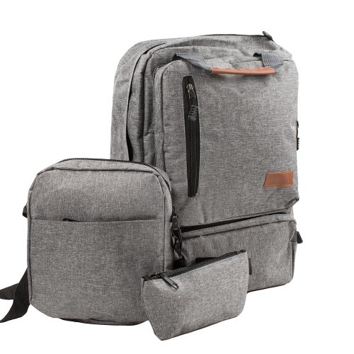 Рюкзак имеет пояс для крепления к чемодану. Изделие имеет тканевую петлю с помощью которой можно переносить аксессуар в руке или повесить на крючок или вешалку, а также удобную мягкую ручку. Есть боковой выход для кабеля USB.Застежка: молния.