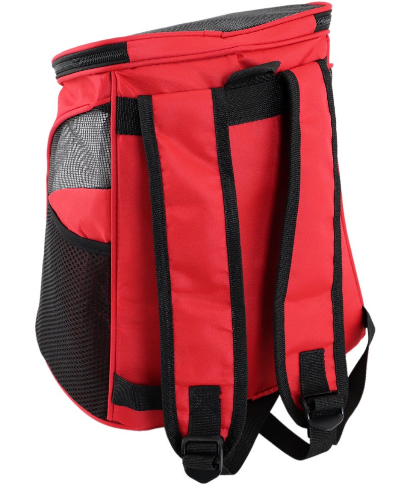 На фасаде, по бокам и верх- сетчатое окошко. Регулируемые плечевые лямки, боковые сеточные карманы.