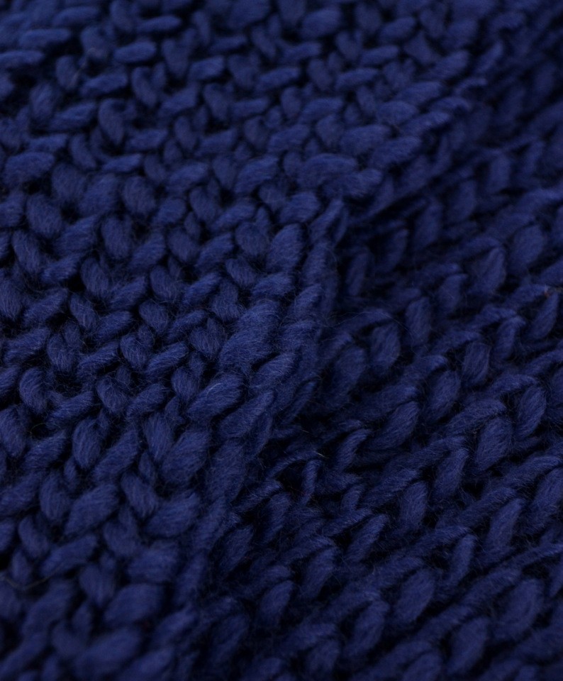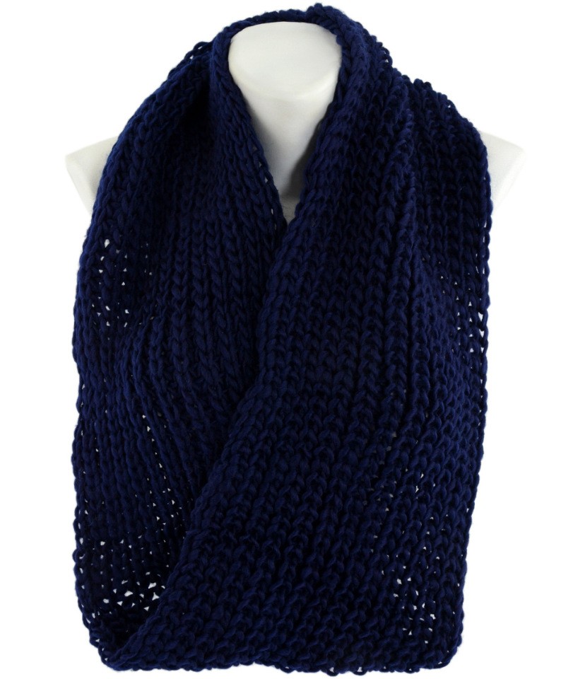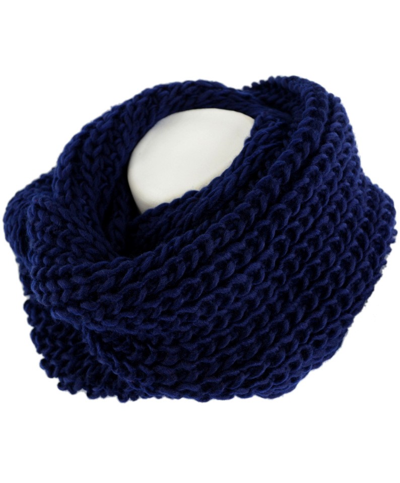 Шарф-снуд из пушистой мягкой нити темно-синего цвета; крупной вязки.