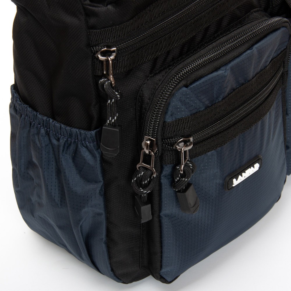 Количество отделов: Внутри находится двойное отделение, разделенное карманом-перегородкой на молнии, карман на молнии и открытый двойной карман. Снаружи сумки находятся вместительные карманы на молнии: 3 на фасаде и 1 на обратной стороне. На фасаде также есть один карман под клапаном. На торцах сумки расположены открытые карманы.