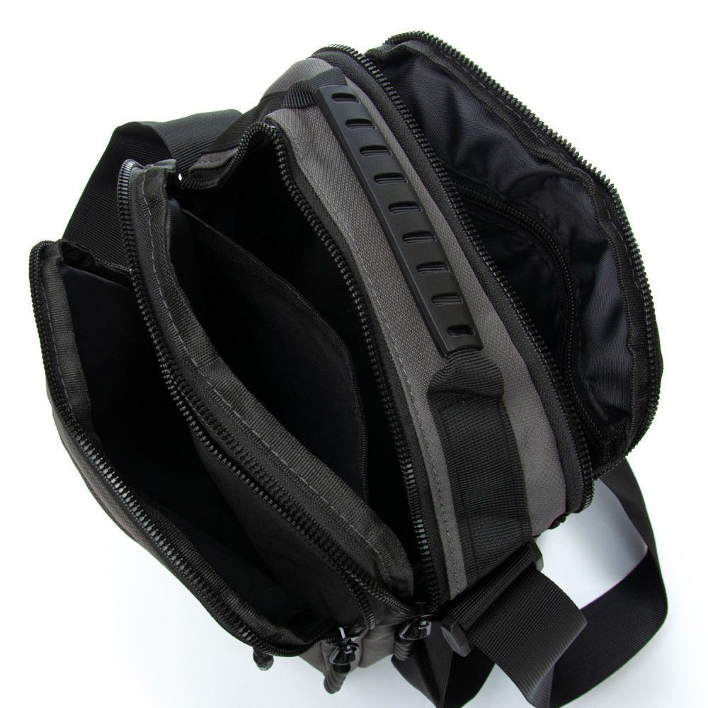 Количество отделов: Два больших отделения, закрываются на молнии. Внутри отделений есть боковой карман на молнии и открытый карман. На фасаде расположены два вместительных кармана на молнии. На обратной стороне сумки находится один карман на молнии.