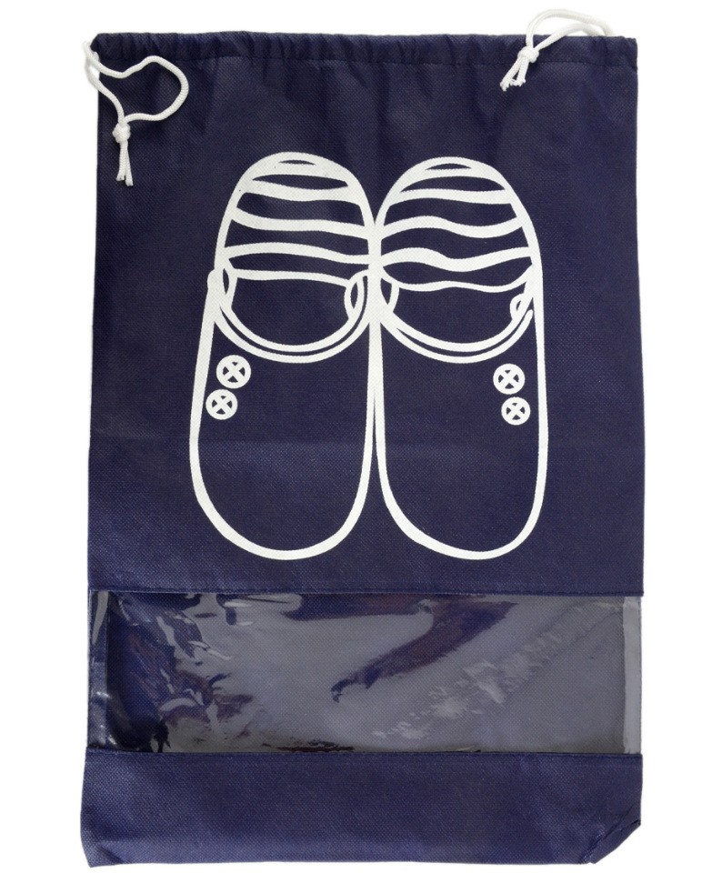 Мешок для обуви синего цвета, затягивается шнурком; с прозрачным окошком.