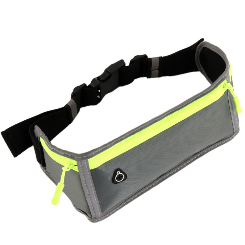 Сумка на пояс из плотного прорезиненного нейлона серого цвета. 1 отделение на молнии с выходом для наушников. По бокам 2 кармашка на молнии. Регулируемый ремень-резинка.