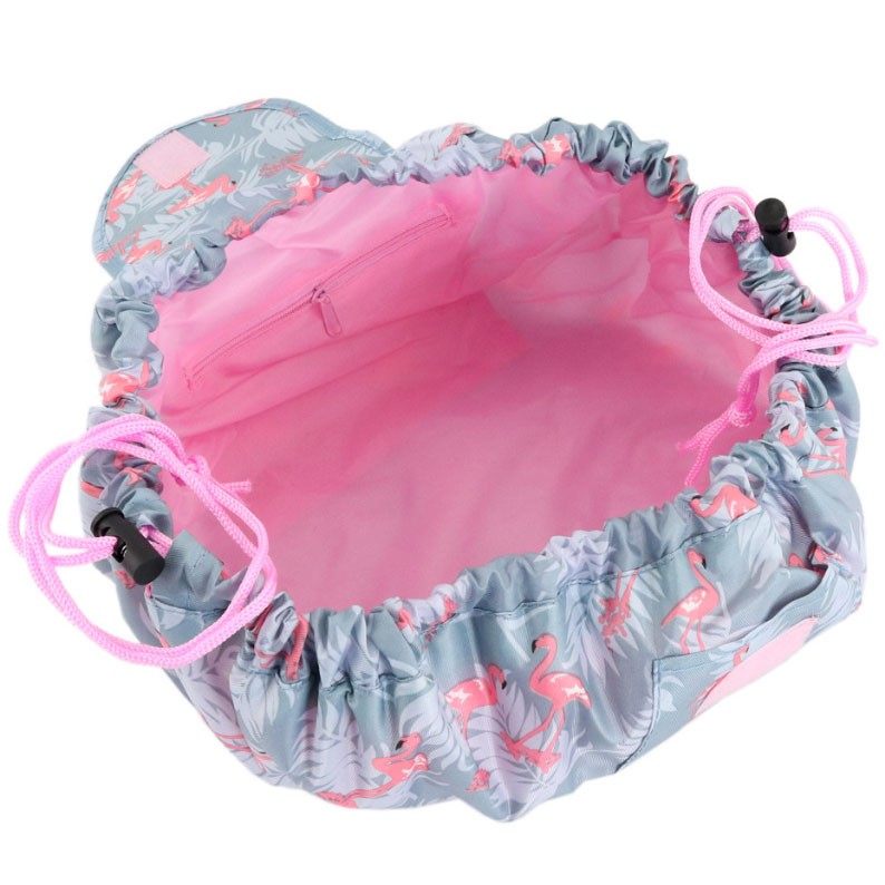 Закрывается клапаном на липучке и кулиской на шнурке, с фиксаторами
