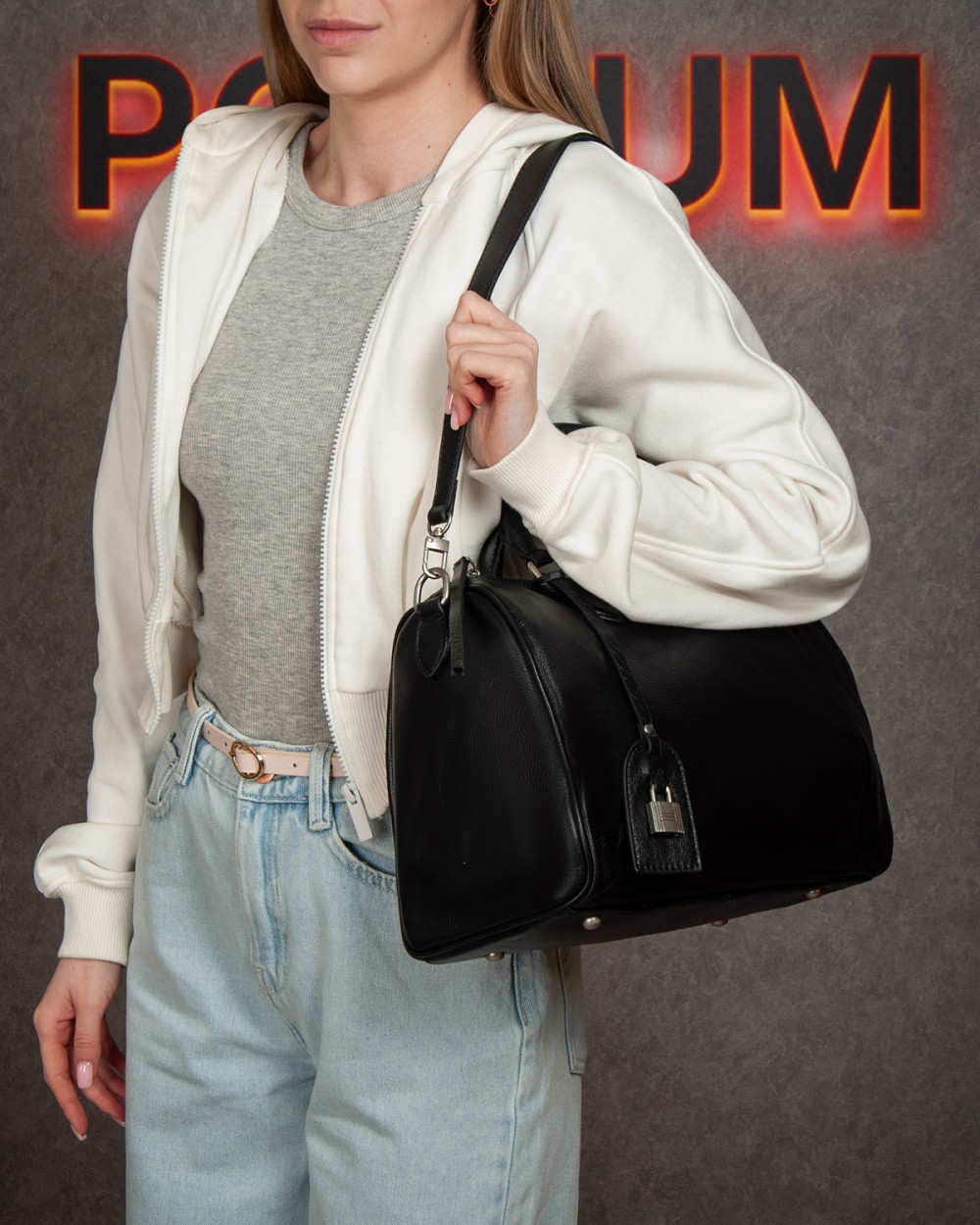 В комплекте регулируемый плечевой ремень и сьемная ручка.