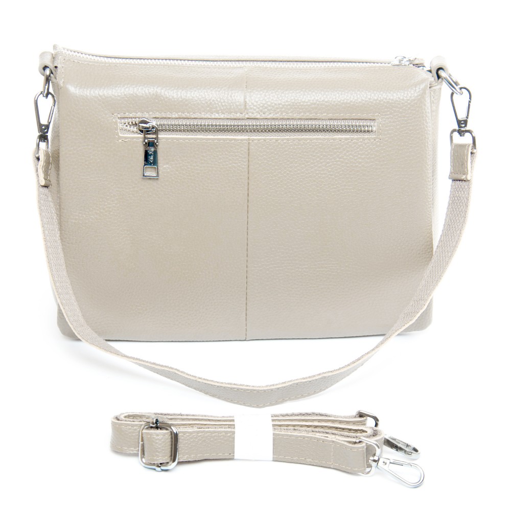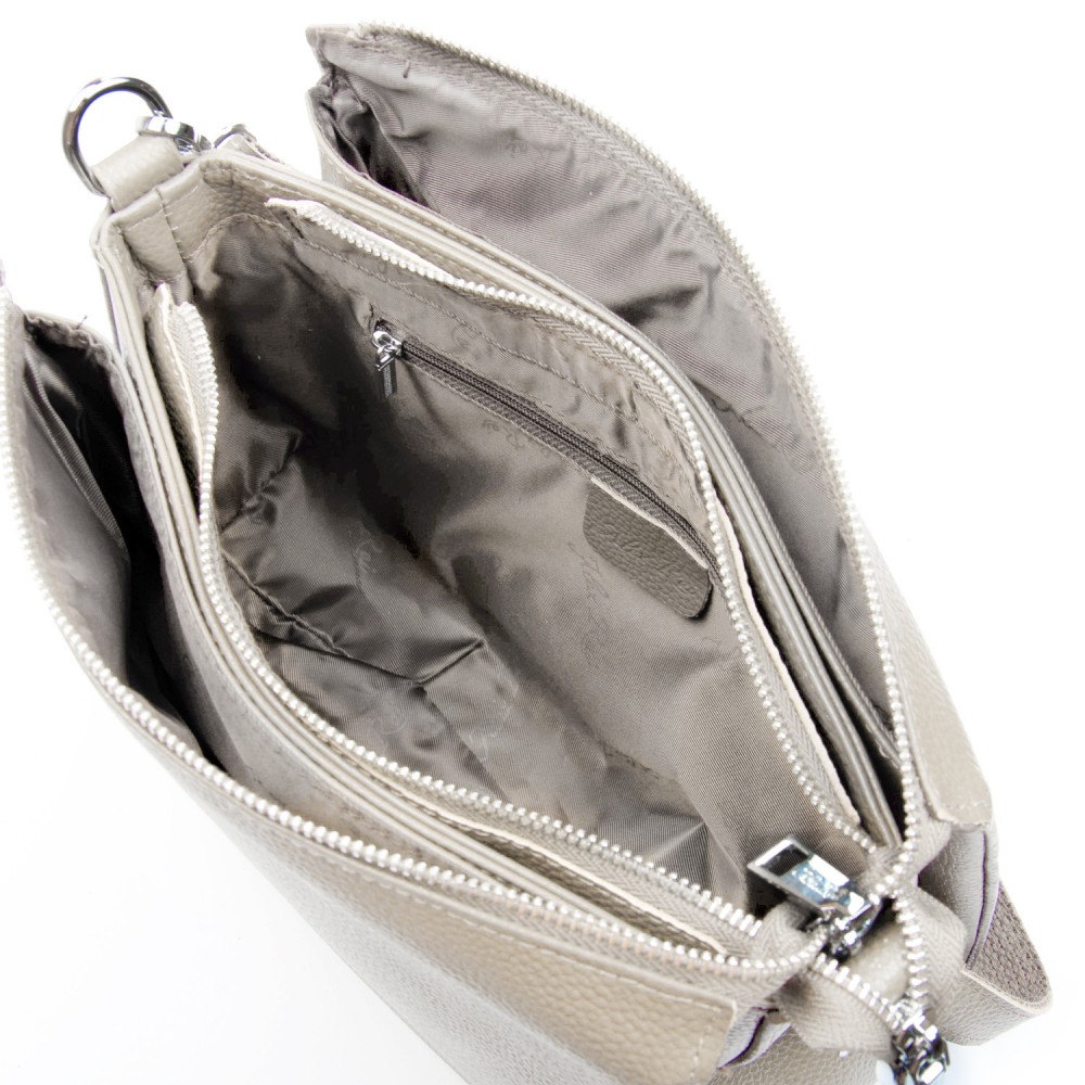 Количество отделов: З отделения разделенные карманом-перегородкой. Среднее отделение дополнительно закрывается на молнию и внутри находится боковой открытый карман и карман на молнии. Снаружи сумки на обратной стороне расположен карман на молнии.