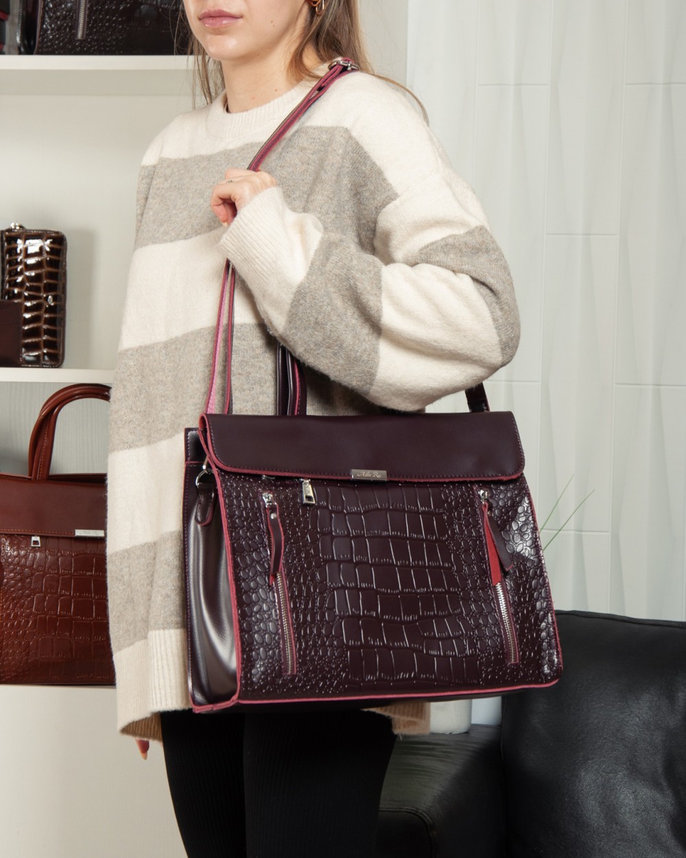Женская кожаная сумка классическая ALEX RAI 5052 bordo croco