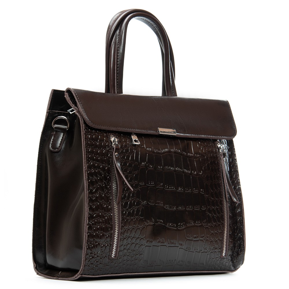 Женская кожаная сумка классическая ALEX RAI 5052 brown croco