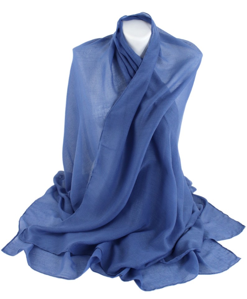 Легкая однотонная шаль-парео из тонкого хлопка синего цвета.