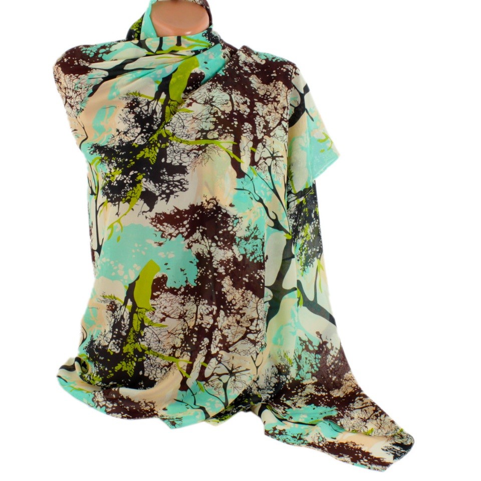 Шаль-парео из качественного шифона с рисунком "деревья"