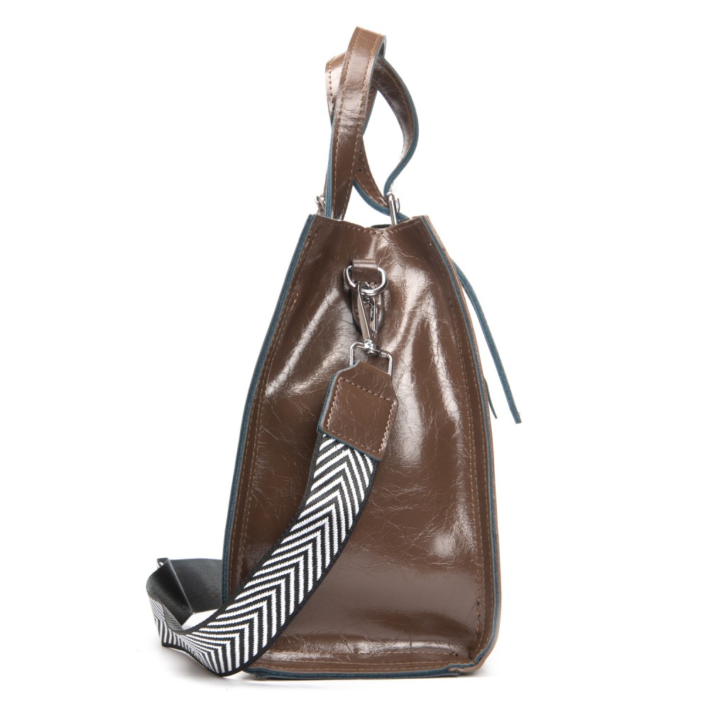 Количество отделов: 3 отделения: центральное закрывается на молнию, а боковые на магнитную кпопку. Внутри центрального отделения находится боковой двойной открытый карман и карман на молнии. Дно сумки жесткое, с металлическими ножками.