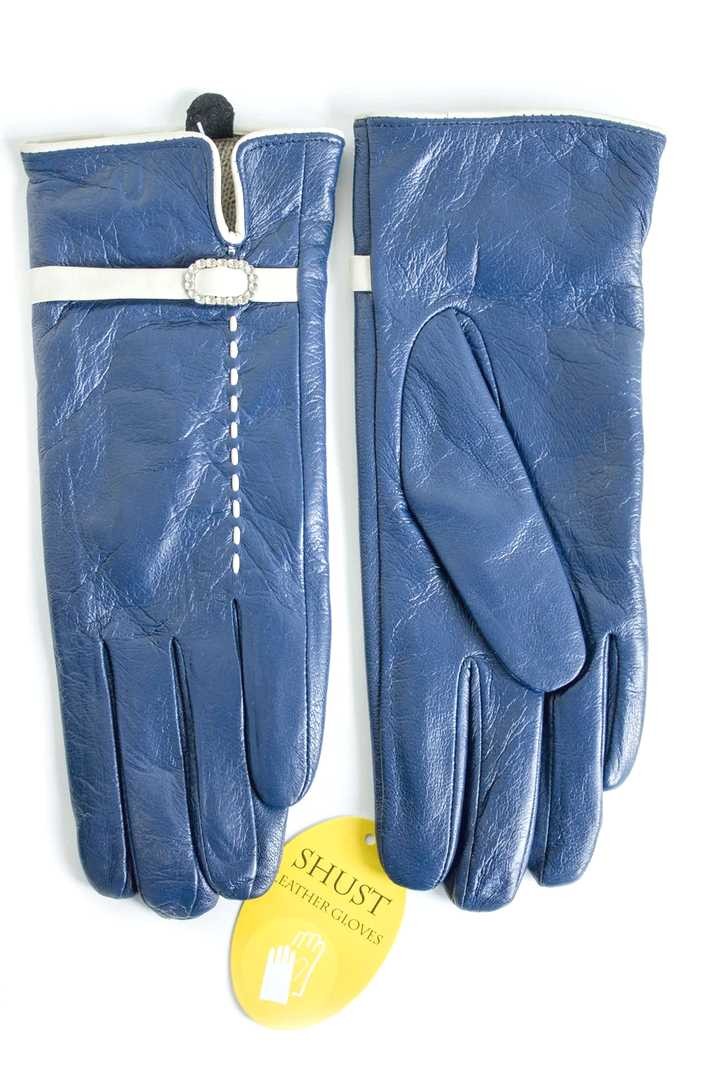 Женские кожаные перчатки Shust Gloves синие 374s3 L