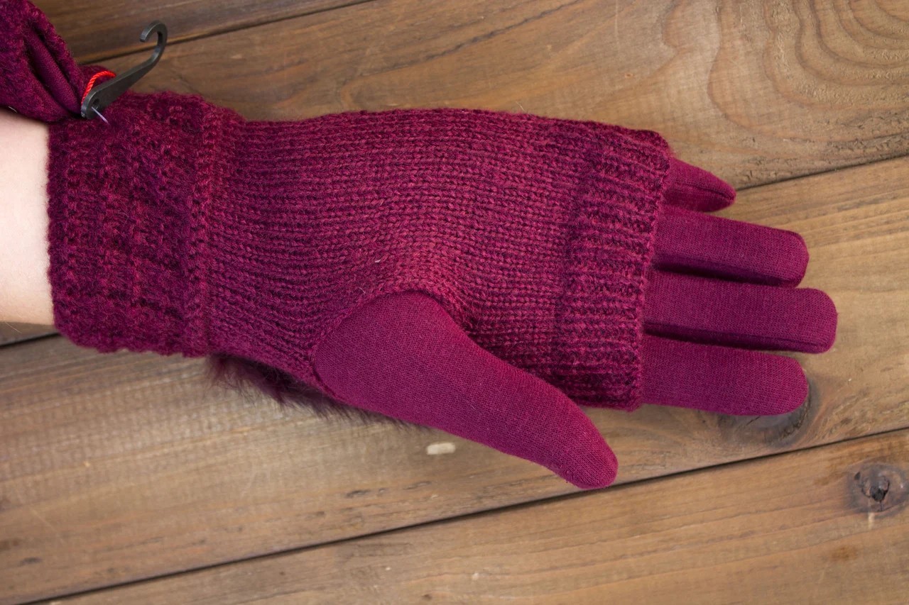 Женские перчатки комбинированные стрейч+вязка бордовые 1973s2 M