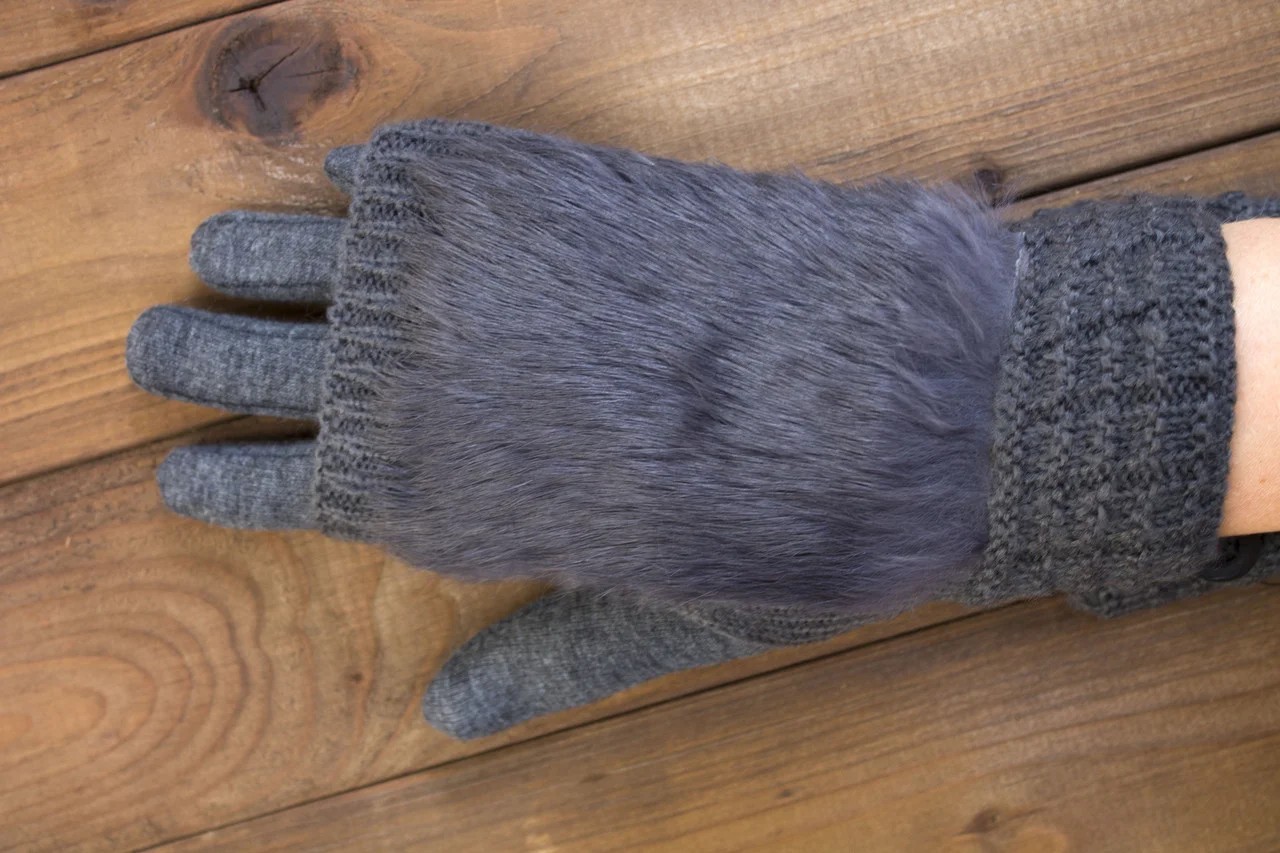 Женские перчатки комбинированные стрейч+вязка серые 1976s1 S