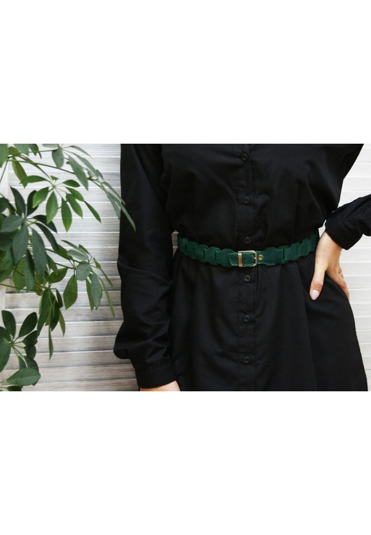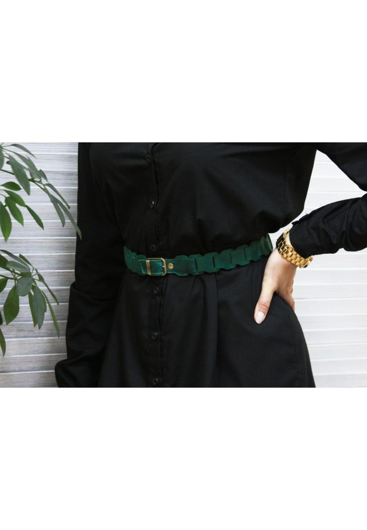 Изумрудный ремень, очень привлекательный оттенок. Ремень стильный, подчеркивает всё нужное в фигуре, скрывает недостатки. Не слишком широкий, что очень важно для меня.