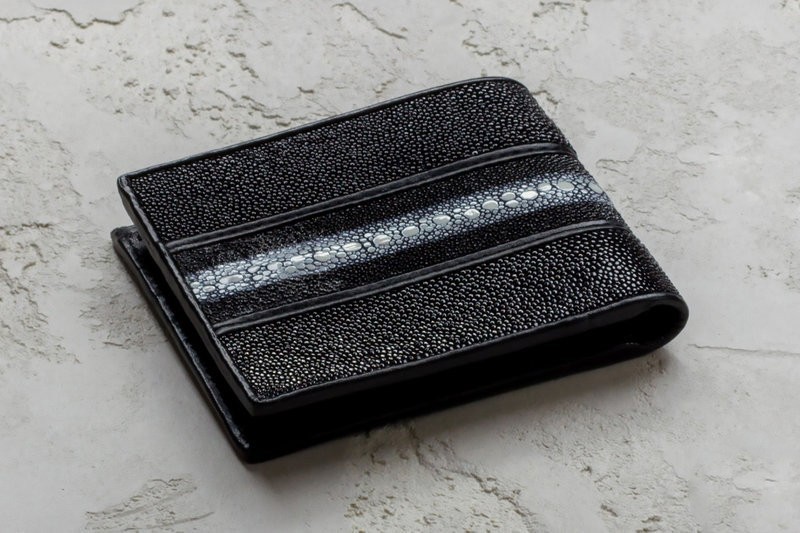 Материал: натуральная кожа ската. Невероятно прочный, огнеупорный и водонепроницаемый материал