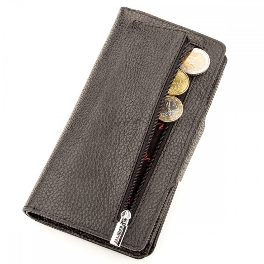 Женский чёрный кошелёк из натуральной кожи KARYA 17235
