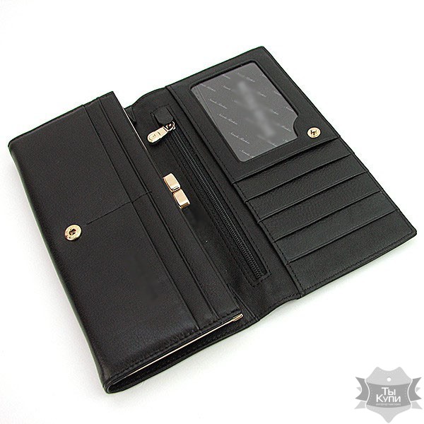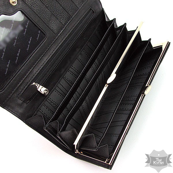 - Количество отделов: три основных отделения для купюр и два дополнительных отдела. Есть восемь слотов для визиток и одно прозрачное отделение для удостоверения