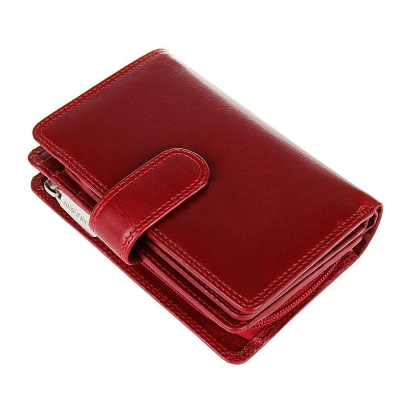 Красная английская элегантность представлена кошельком Visconti с романтичным названием Венеция. Даже после детального рассмотрения каждого миллиметра изделия невозможно найти изъян не в двойной строчке, не в кнопке-застежке, не в оформлении двух купюрных отделений, места для монеток и кармашков для всевозможных карт. Помимо хорошо продуманного внутренней организации, аксессуар может похвастать и натуральностью материала, который очень приятен на ощупь. Яркий красный цвет предпочитают яркие дамы, умеющие захватить внимание мужчин.