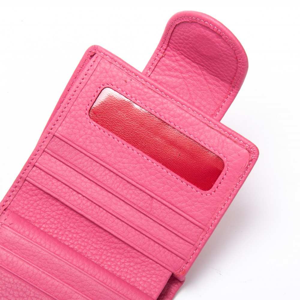 Количество отделений: 2 больших открытых отделения для банкнот (разделены кожаной перегородкой) и одно отделение на молнии. Также есть 12 карманов для визитных карт, 4 из которых выполнены прозрачными. Снаружи кошелька на обратной стороне есть монетница на кнопке.