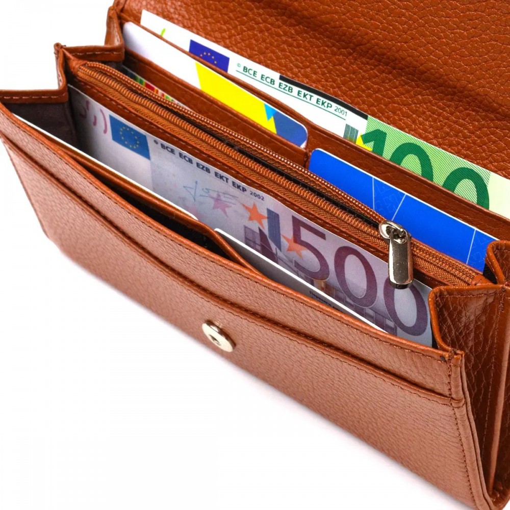 - 2 основных отделений для купюр с карманом-перегородкой на молнии;