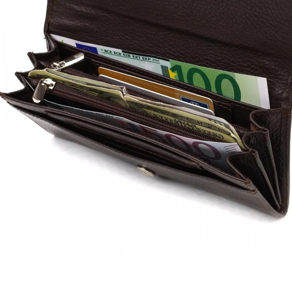 - 3 основных отделений для купюр с двумя перегородками на молниях;