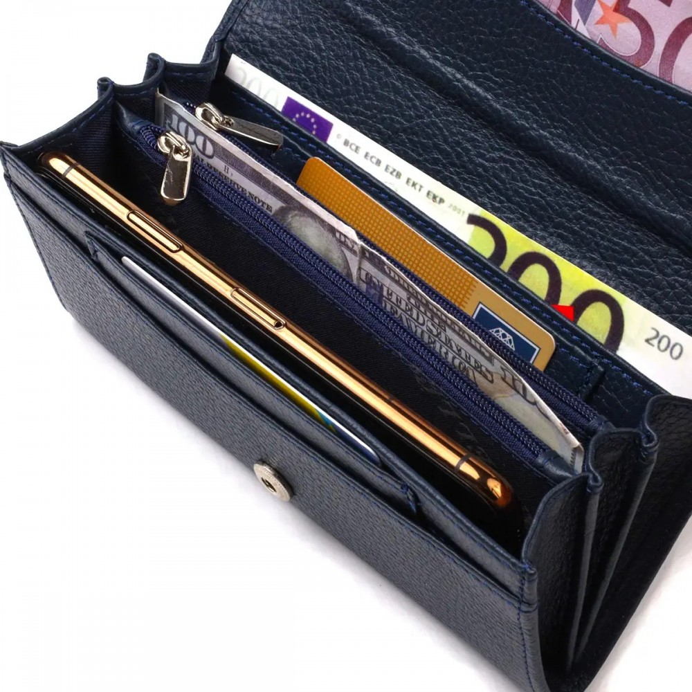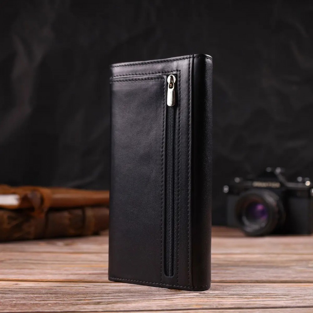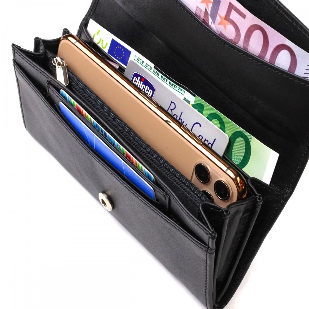 - 3 основных отделений для купюр с двумя перегородками на молниях;