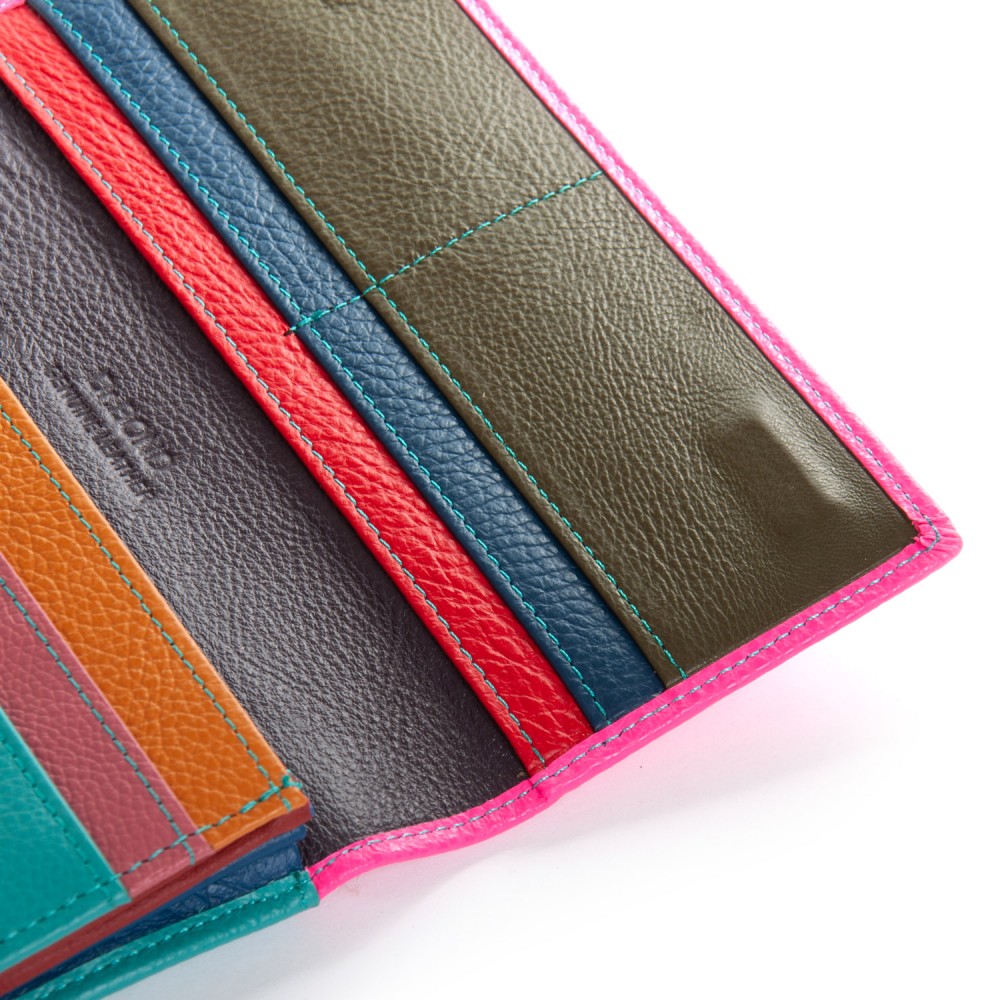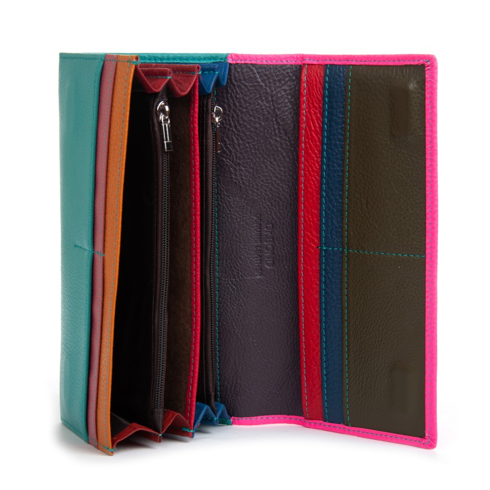 Количество отделений: 4 открытых отделения для банкнот, 2 больших кармана-монетницы на молнии, один большой открытый карман и 8 карманов для визитных карт. Снаружи кошелька на обратной стороне расположен карман на молнии.