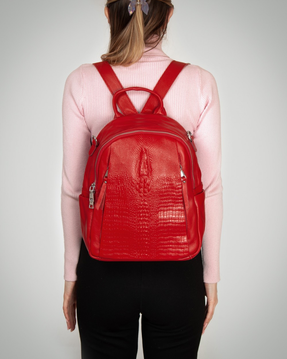 Женский кожаный рюкзак ALEX RAI 8907-9 red croco