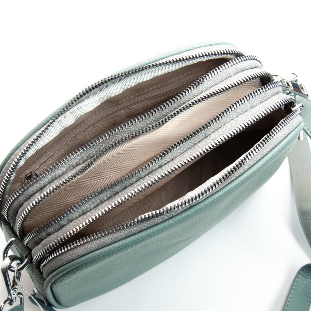 Количество отделов: 3 отделения, закрываются на молнии. Внутри находится боковой карман на молнии. Снаружи сумочки на обратной стороне расположен карман на молнии.