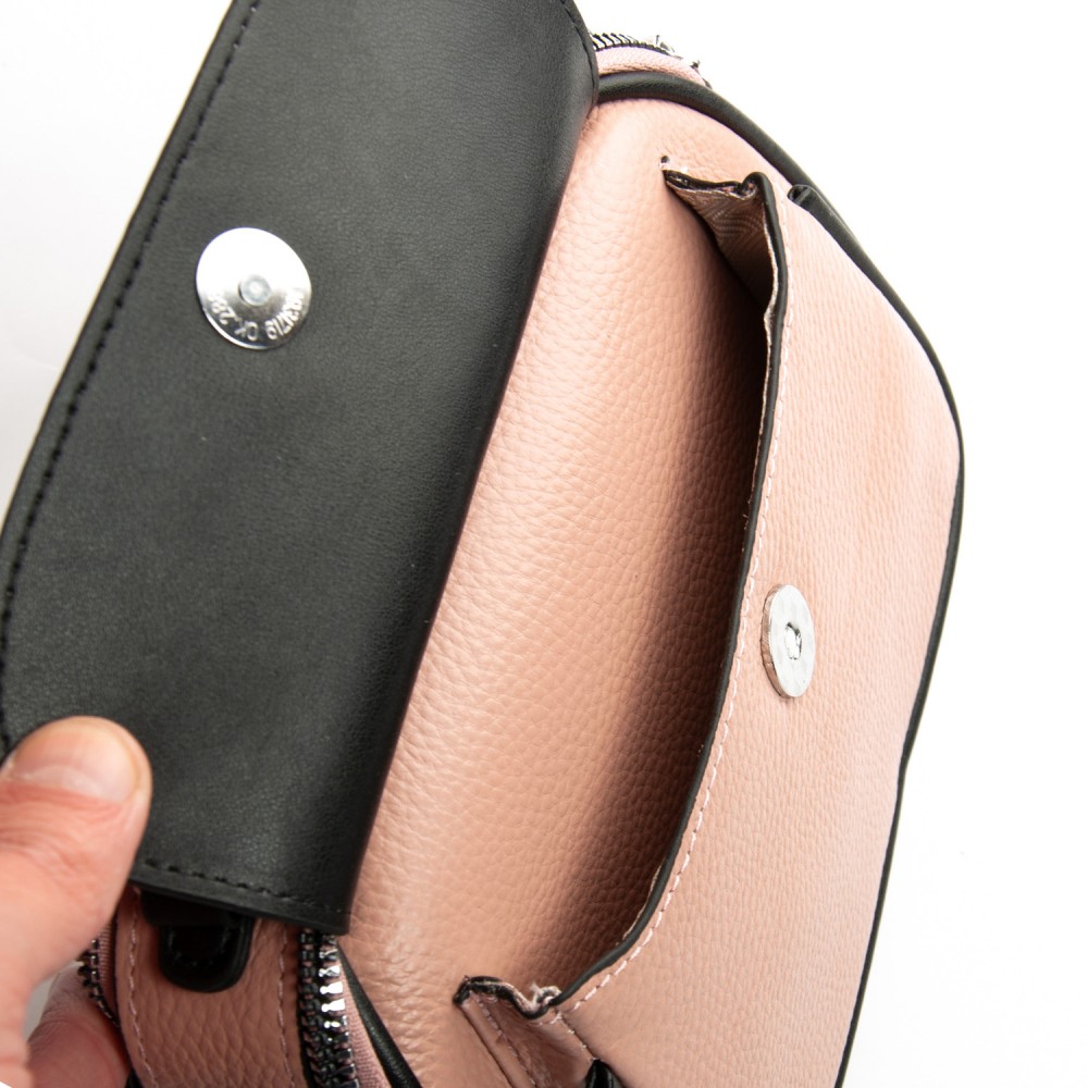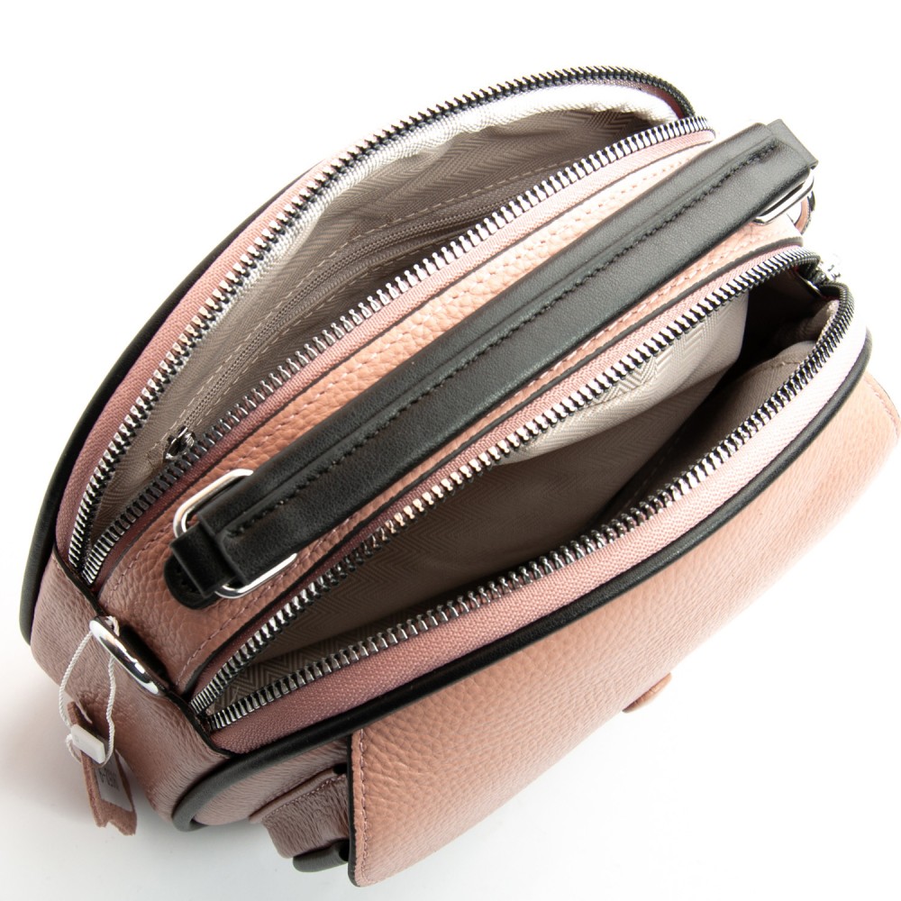 Количество отделов: 2 отделения, закрываются на молнии. Внутри находится боковой карман на молнии и открытый карман. Снаружи сумочки на фасаде есть карман под клапаном на магнитной кнопке, а на обратной стороне расположен карман на молнии.