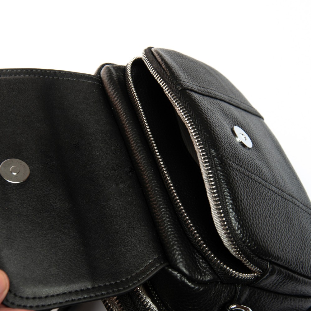 Количество отделов: 2 отделения, закрываются на молнии. Внутри находится боковой карман на молнии. Снаружи сумочки на фасаде есть карман на молнии и дополнительно под клапаном на магнитной кнопке.
