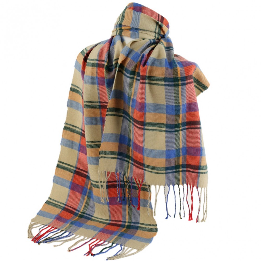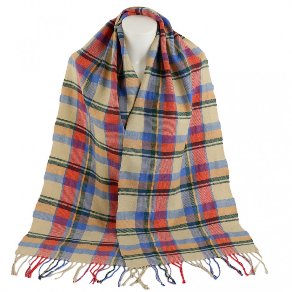 Мягкий теплый шарф в клетку, имеет длинную бахрому