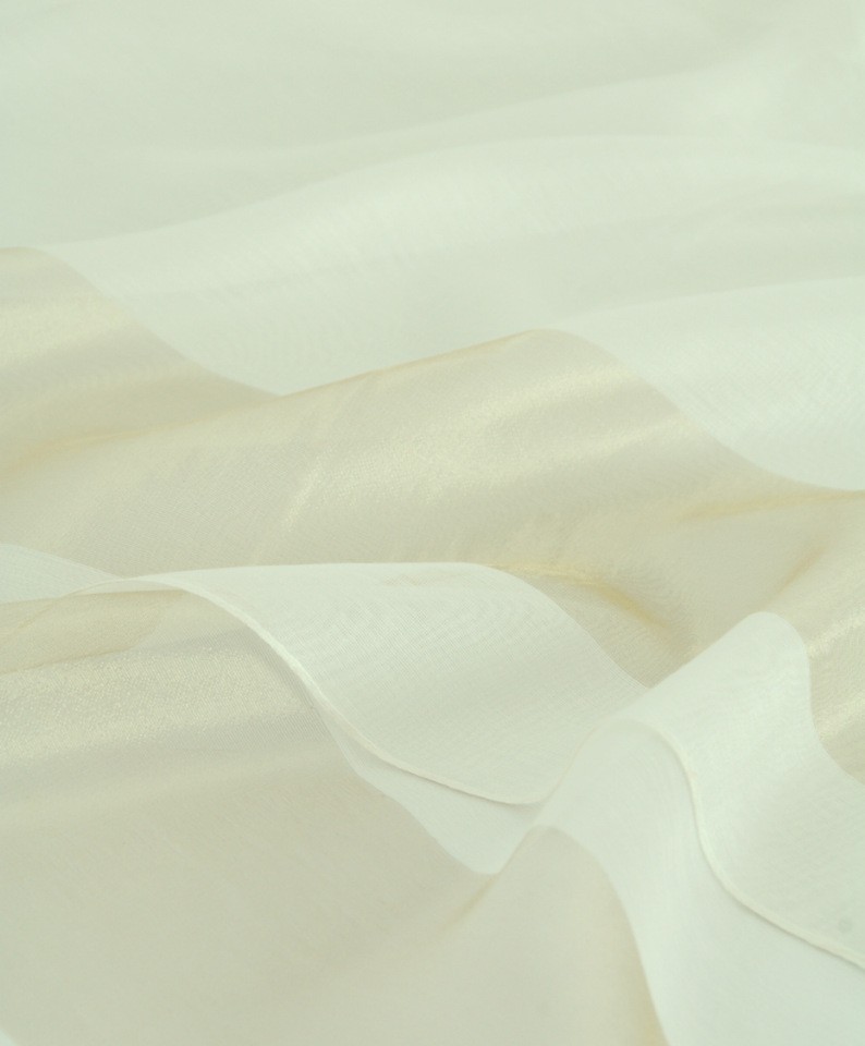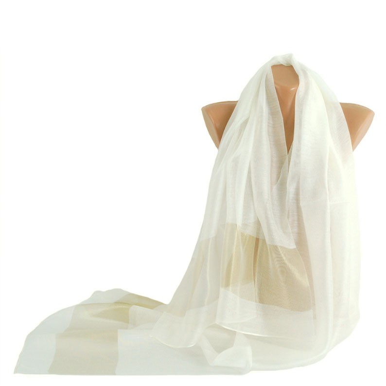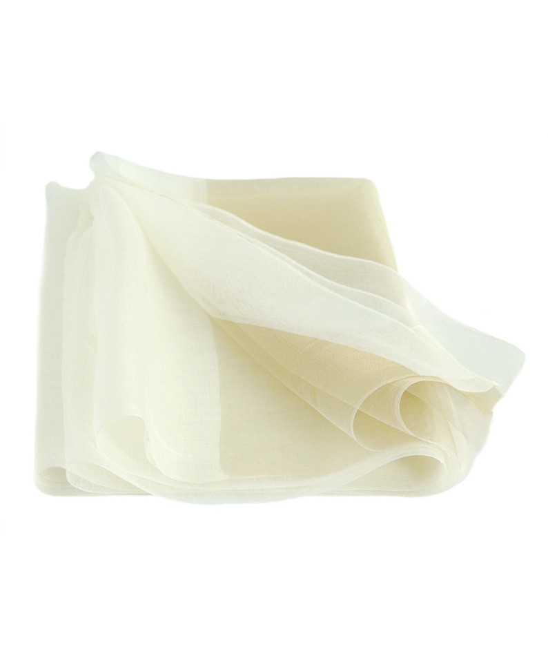Легкий шелковый шарф цвета слоновой кости с широкой полупрозрачной золотистой полосой.