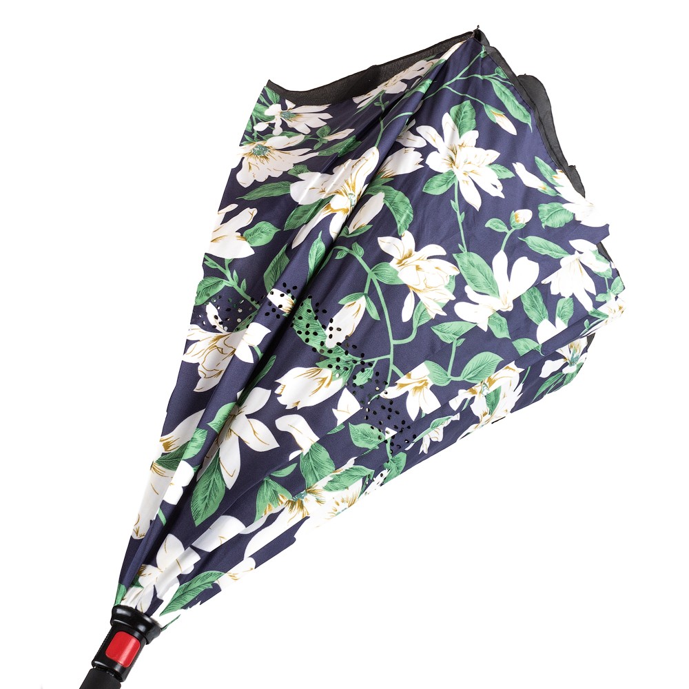 - Благодаря обратному сложению зонт можно поставить на пол для сушки, не раскладывая его, не прислоняя и не занимая много места;